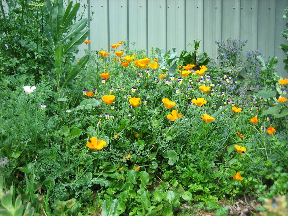 The gazania along the front fence were replanted after the job of painting the pickets was completed last autumn. The manure and compost dug into the narrow bed seem to be working.